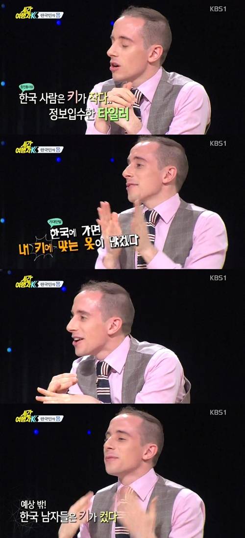 타일러 라쉬는 1월 3일 첫 방송된 KBS 1TV '시간여행자K'에서 한국에 오기 전 한국 남자 키에 대한 편견을 갖고 있었다고 털어놨다.