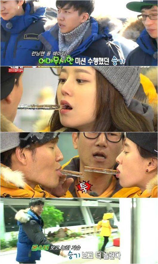 두번째는 얼음 막대 짧게 남기기. 유재석과 이광수는 고개까지 비틀어가며 과자 먹기에 몰두했고, 급기야 입술이 밀착되는 '충격과 공포'의 상황이 발생했다. 모두들 입을 다물지 못했고 이광수는 "살면서 여자와도 이렇게 해본 적이 없다"라고 강조해 웃음을 자아냈다.