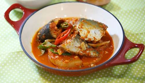1. 고등어는 쌀뜨물이나 우유에 담가 생선 비린내를 제거 후 토막 내 손질한다.2. 무는 두툼하게 납작하게 썰고, 양파는 채 썰기, 대파와 고추는 어슷썰기를 한다.3. 냄비에 무를 깔고 무가 잠길 정도 양의 물을 붓고 만들어 놓은 양념장 반을 덜어 조린다.4. 무가 어느 정도 익으면 고등어를 넣고 남은 양념장을 넣고 양파와 대파를 함께 넣어 조린다.5. 고등어와 무가 익으면 청, 홍고추를 넣어 주고 마무리한다.