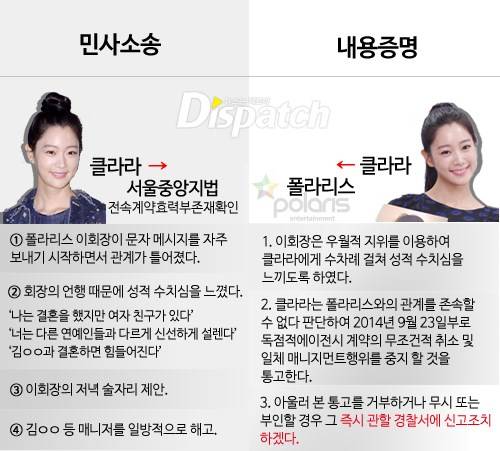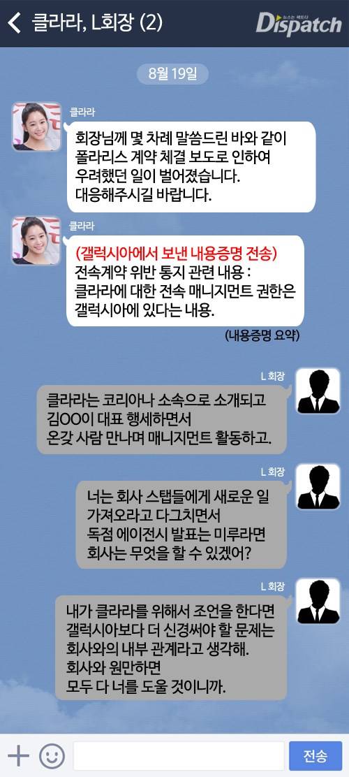 심지어 폴라리스는 클라라에게도 '내용증명'을 발송했다. 中日 에이전시 관련 내용을 공개하라는 것. 그도 그럴 것이 클라라는 중국과 일본 에이전시 계약서를 차일피일 미루었다.