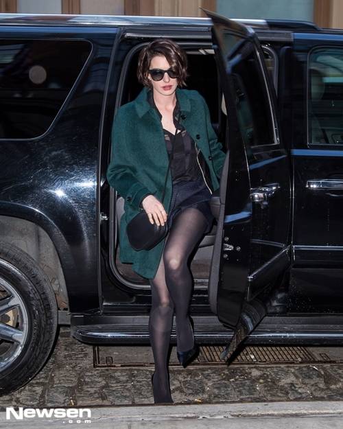 보도에 따르면 앤 해서웨이는 이날 미국 뉴욕에 있는 한 스튜디오에서 진행된 TV쇼 녹화를 마치고 자신의 호텔 입구에 도착했다. 이날 몸매를 드러낸 블라우스에 핫팬츠를 입은 앤 해서웨이는 아찔한 각선미를 공개, 시선을 한몸에 받았다.