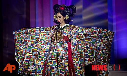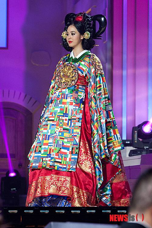 유예빈, 내몸에서 펄럭이는 만국기..미스유니버스 한복