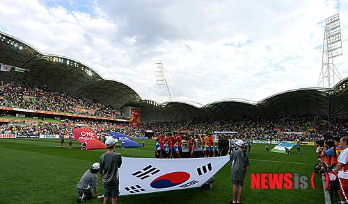 멜버른 렉탱귤러 스타디움에 울려 퍼지는 애국가