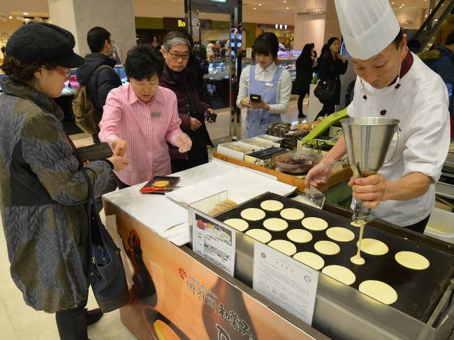 [헤럴드경제(부산)=윤정희 기자] 롯데백화점 부산본점 지하 1층 식품관 박찬회 매장에서 만화영화 도라에몽 빵으로 유명한 '도라야끼'를 직접 만들어 판매해 고객들에게 인기를 얻고 있다. 도라야끼는 핫케익에 팥과 밤, 호두 등을 넣어 부드럽고 달콤해 모두가 좋아하는 간식, 시연 판매 행사는 오는 25일까지 진행한다.