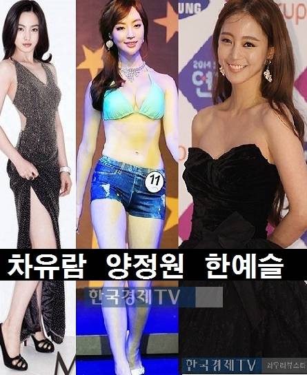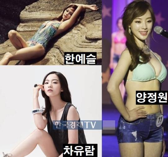 (전현무 열애설 양정원 사진 설명 = 한예슬 비키니 화보 '인스타일' / 차유람 섹시화보 '맥심'/ 양정원 '미스 인터콘티넨탈 참가 당시 사진' 한경DB)