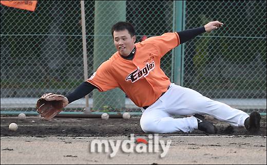 27일 고치 시영구장 보조경기장. 한화 투수들이 사이드 펑고 훈련에 한창이었다. 투수 A조에 속한 임경완 양훈 정대훈 구본범 허유강, 마일영 정민혁 안영명 이동걸 김강래가 2개 조로 나뉘어 이상군 코치와 이정호 코치가 쳐주는 펑고를 받았다.
