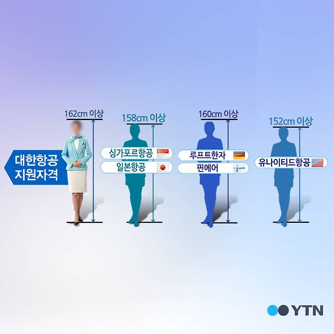 지금까지는 키가 162cm 이상 돼야 대한항공 승무원이 될 수 있었습니다. 하지만 외국항공사는 키 제한이 없는 경우가 많고, 있어도 우리보다 기준이 낮은 곳이 대부분이었습니다.