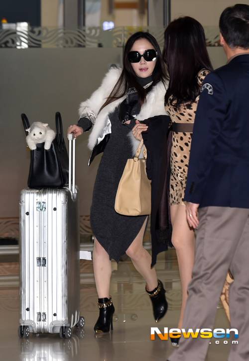 팝아티스트 낸시랭이 배우 민송아와 함께 상하이 미술 전시회 프로모션을 마치고 2월 3일 오후 김포국제공항을 통해 공항패션을 선보이며 상하이에서 귀국했다.