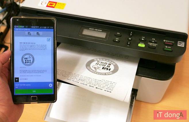 만약 DCP-1610W가 공유기에 연결되었다면 같은 와이파이 네트워크에 접속한 스마트폰이나 태블릿PC와 같은 모바일 기기로도 이용이 가능하다. 구글플레이스토어나 애플앱스토어에 있는 Brother iPrint&Scan 앱을 설치하면 PC의 도움을 받지 않고도 모바일기기에 저장된 문서나 사진을 곧장 출력할 수 있다.