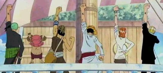 | ▲ 만화 '원피스'의 한 장면. 손목의 'X'표시는 동료애를 상징한다. | ||