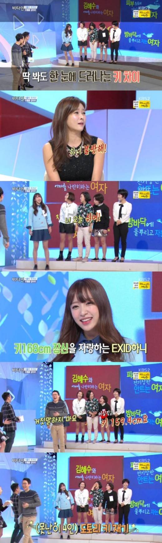 [TV리포트=황지영 기자] '비타민' EXID 하니가 168cm의 키로 개그우먼 4인방을 압도했다.