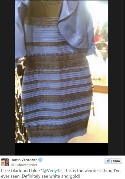 반면 올 시즌부터 LA 다저스의 유니폼을 입고 뛰게 될 엔리케 에르난데스(24·푸에르토리코)는 구단과 입장이 달랐다. 그는 자신의 SNS에 "드레스의 색상이 하얀색과 금색이라고 확신한다"며 이어 "우리들은 모두 색맹인가요?"라는 의견을 남겨 구단과 정반대의 입장으로 화제를 모았다.2011년 아메리칸리그 최우수 선수상에 빛나는 디트로이트 타이거스의 우완 투수인 저스틴 벌렌더(32·미국)는 드레스 사진을 접한 후 자신의 SNS 계정에 "검은색과 파란색이 보인다"고 밝혔다.