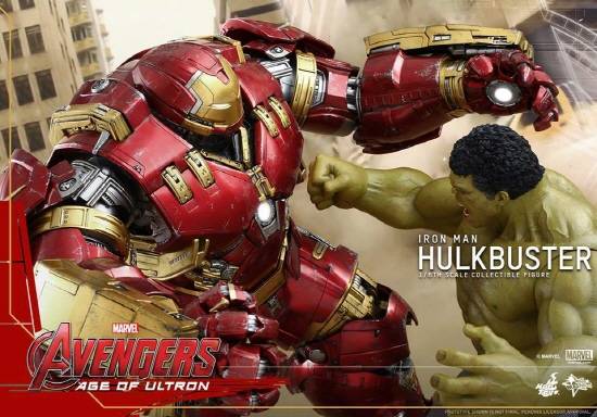 홍콩의 피규어 업체 핫토이가 공개한 헐크버스터는 눈과 가슴, 손바닥, 등, 다리에 LED가 점등되며, 가슴에는 아이언맨의 상징인 아크원자로를, 내부에는 아이언맨 마크 XLIII 버스트(흉상)를 탑재했습니다.