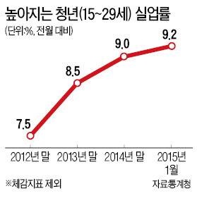 정부가 발표하는 공식 실업률은 이 같은 청년 실업의 현실을 제대로 감지하지 못하고 있다. 정규직 취업을 원하는 아르바이트생이나 취업을 위해 졸업을 미루고 있는 '대학 5학년생' 등이 제외된 수치기 때문이다. 그럼에도 청년(만 15~29세) 실업률은 2012년 말 7.5%에서 2013년 말 8.5%, 올해 1월 9.2%로 치솟고 있다.