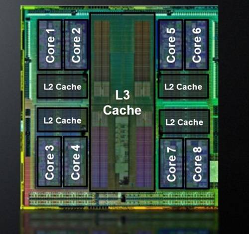 <8개의 코어를 갖춘 옥타코어 CPU인 'AMD FX' 프로세서의 내부 구조>