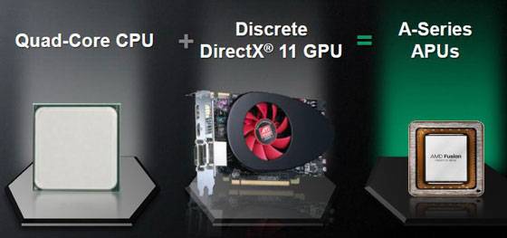 <APU는 CPU와 GPU를 하나로 융합한 프로세서라는 점을 강조하고 있다>