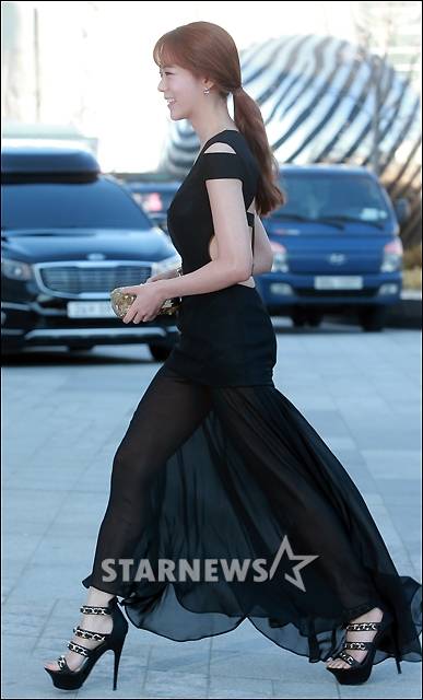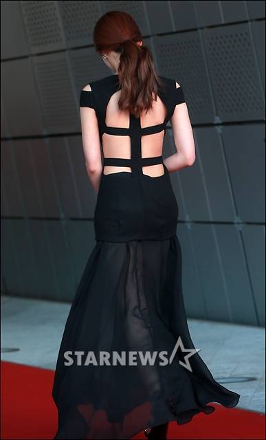 카라 한승연이 13일 오후 서울 중구 동대문디자인플라자에서 열린 '2015 케이블TV방송대상' 레드카펫에서 등을 드러낸 과감한 드레스로 눈길을 끌고 있다.