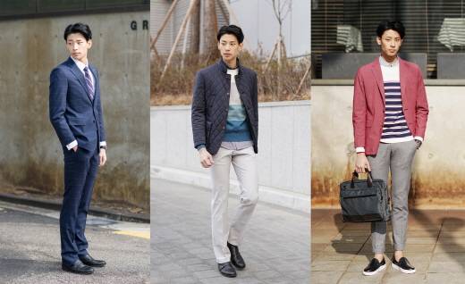 다른 이들보다 좀 더 근사한 슈트 차림을 선보이고 싶다면 소재와 핏에 신경을 쓰면 된다. 특히, 소재는 슈트의 멋을 좌우하는 중요한 포인트. 울 100%나 울/실크 혼방 등 고급 소재일수록 슈트의 멋이 살아난다. 요즘에는 라이크라 혼방 등 신축성 좋은 기능성 소재를 사용해 활동성을 높인 제품들도 날렵하고 스마트한 느낌을 줄 수 있어 인기를 끌고 있다.웰메이드의 남성 슈트 브랜드 브루노바피(BRUNO BAFFI)에서는 S1라인 봄 신상품으로 네이비 컬러의 윈도우 체크 슈트를 선보인다. 슬림핏의 기본 슈트에 체크 패턴을 은은하게 적용해 깔끔하고 세련된 느낌을 살렸다. 겉감은 신축성이 좋은 라이크라 혼방 소재를 사용하고, 소매 안감 등에도 기능성 스트레치 소재를 적용해 입었을 때 활동이 편하다. 가격은 59만원.최근 IT나 연구직뿐 아니라 일반 회사에서도 실용적이고 편안한 비즈니스 캐주얼이 점차 대세가 되고 있다. 비즈니스 캐주얼은 말 그대로 정통 슈트와 캐주얼의 장점을 합친 스타일로, 연출 방법도 다양하고 자유롭다.가장 손쉽게는 재킷에 캐주얼 셔츠를 입고 타이를 매지 않거나 면바지 등 캐주얼한 하의를 입는 정도의 믹스매치 스타일을 시도해볼 수 있다. 일교차가 큰 초봄에는 일반 재킷 대신 맥코트나 퀼팅 재킷 등을 걸치면 더욱 따뜻하고 멋스럽다. 셔츠 대신 라운드넥 니트 등을 입는 것도 보온성을 높이는 한 방법이다.남성 캐주얼 브랜드 인디안(INDIAN)에서는 간절기에 입기 좋은 퀼팅 스마트 재킷을 선보인다. 어두운 네이비 컬러로 스타일링이 손쉽고, 스트레치 소재를 사용해 착용감이 편안하다. 재킷 전체에 퀼팅 패턴이 들어가있어 트렌디한 스타일을 연출해줄 뿐 아니라 보온성 또한 높다. 가격은 39만원.광고나 패션, 유통 업계 등 항상 트렌드에 민감하게 반응해야 하는 분야에서는 옷 잘 입는 게 미덕이 될 수 있다. 따라서 최대한의 센스를 발휘해 패셔너블한 스타일을 추구하는 게 좋다. 패셔니스타가 되기 위해서는 패션 트렌드에 늘 관심을 기울이며 다양한 아이템을 시도해봐야 한다.최근에는 스포티즘이 전세계적으로 유행하고 있으니 비즈니스 캐주얼에 스포티즘을 결합한 스타일을 시도해보는 것도 좋을 것. 일반적인 비즈니스 캐주얼 스타일에 스웨트 셔츠(맨투맨 티셔츠) 등을 매치하거나 스니커즈 등 다소 스포티한 느낌의 신발을 신는 등 가벼운 단계부터 시작해보는 방법을 추천한다.또한, 화사한 봄 날씨에 맞춰 민트, 오렌지 등 과감하고 밝은 컬러의 팬츠를 시도해보거나 개성 있는 프린트의 셔츠를 입는 등의 방법으로 보다 위트 있는 스타일을 완성할 수도 있다. 치노팬츠나 카고팬츠 등 캐주얼한 느낌의 팬츠는 발목 부분을 살짝 접어 올린 롤업 스타일로 입으면 더욱 멋스럽다.TD캐주얼 브랜드 헤리토리(HERITORY)는 올 봄 독특한 조직감이 특징인 필라필(두 가지 색의 실로 짠 질긴 모직물) 재킷을 선보이고 있다. 헤리토리 필라필 재킷은 투버튼의 기본핏으로 셔츠, 티셔츠, 니트 등과 두루 잘 어울리며 캐주얼한 스타일을 손쉽게 연출해준다. 컬러는 그레이, 레드, 네이비 세 가지며, 가격은 23만원.웰메이드 관계자는 "처음 조직생활을 시작하는 사람에게 기업 문화에 맞는 복장이나 애티튜드를 갖추는 것은 매우 중요하면서도 쉽지 않은 일"이라며 "자신이 근무하고 있는 회사의 선배나 상사 등 기존 구성원들의 패션을 잘 살펴보고 그들의 톤앤매너를 참고하는 것도 방법"이라고 조언했다.