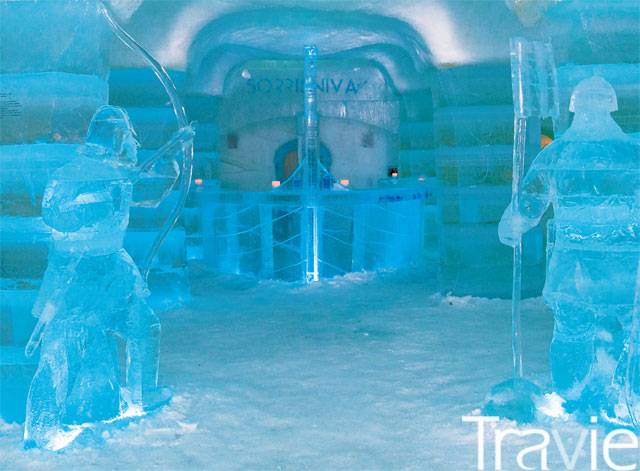 알타의 겨울을 대표하는 또 하나는 이글루호텔, 오직 눈과 얼음으로만 지은 호텔이다. 알타 도심에서 20km 떨어진 소리스니바 이글루호텔Sorrisniva Igloo Hotel은 올해로 16년째 매년 1월 초마다 새로운 호텔을 열어 왔다. "어떻게 짓느냐고요? 거대한 풍선을 놓고 눈과 물을 섞어 그 위를 덮는 방식이에요. 내부의 침대, 소파, 테이블 등은 얼음을 조각해 만들고요. 매년 새로운 주제로 만들고 겨울이 지나면 녹아 사라지기 때문에 이곳에서 숙박하는 건 매우 특별한 경험이 되죠."
