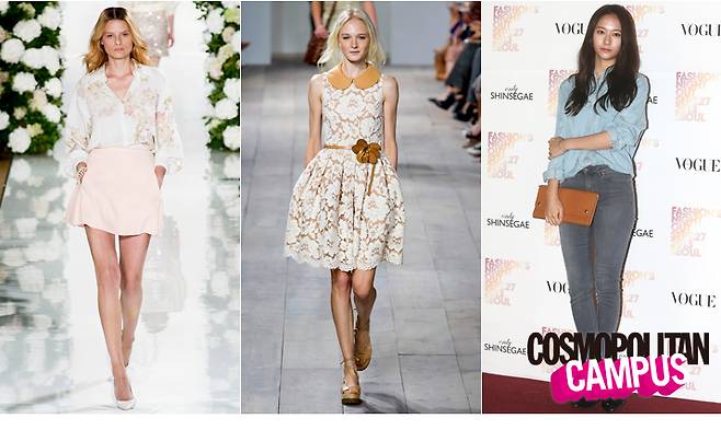 코캠 한 끗 팁2015 S/S 최고의 트렌디 소재, 레이스를 선택할 것. 마이클 코어스 원피스처럼 스킨 톤과 화이트가 조화를 이룬 섹시한 아이템을 하나 장만해 두면 소개팅은 물론 결혼식 하객룩, 봄나들이 출사 시에도 문제 없다.