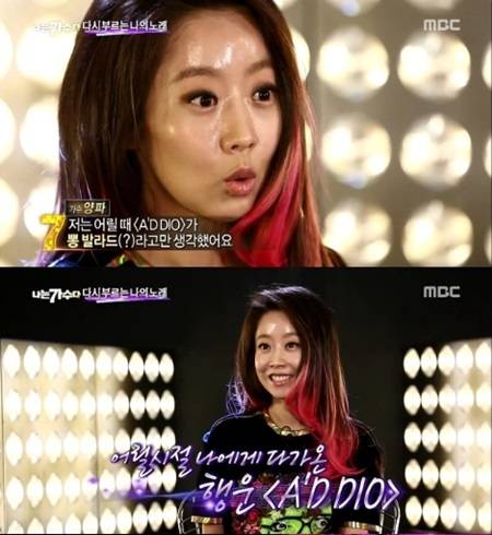 이날 방송에서 양파는 자신의 곡인 '아디오'를 선곡했다. 양파는 무대에 오르기 전 "어릴 땐 뽕발라드라고 생각했다"며 "어린 마음에 이 노래를 싫어했다"고 밝혔다.