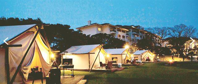 제주 신라호텔이 2012년 국내에 처음 문을 연 글램핑 존. 대형 카바나 텐트 8동이 마련돼 있다. 숙박은 할 수 없고 셰프가 요리해 주는 바비큐를 즐기며 글램핑을 체험하는 방식으로 운영된다. 이곳 글램핑 존이 입소문 타면서 전국 리조트 및 호텔들이 속속 글램핑 체험 공간을 오픈했다. 이후 글램핑은 이색 숙소로 알려지며 대중화의 길로 들어서게 됐다. /2015-03-23(한국스포츠경제)