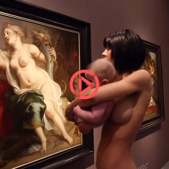 [쿠키영상] 누드 작품을 관람하는 알몸의 여성, 가슴에 안은 아기는 왜?