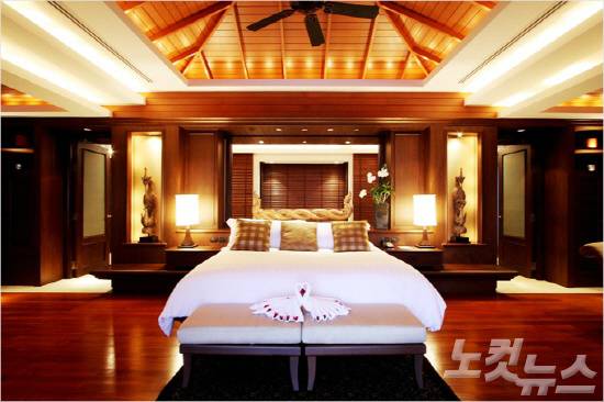 신혼여행자들이 사용하는 객실은 대개 280 평방미터의 면적을 자랑한다. 넓은 침실에는 푹신한 킹사이즈 침대가 놓여있고 다이닝 테이블과 탁자에는 푸른 그늘이 햇빛에 흔들린다. 리조트 디자이너는 욕실에서도 특별한 아이디어를 가미했다. 침대 뒤쪽으로 슬라이딩 도어를 둬 접근이 쉬운 공간으로 만들었는데 화장실과 개인 샤워실 세면대가 두 개다.