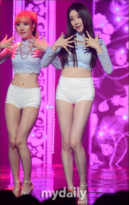 [MD포토] 스텔라 민희-가영, '늘씬 각선미에 아찔한 복근까지'