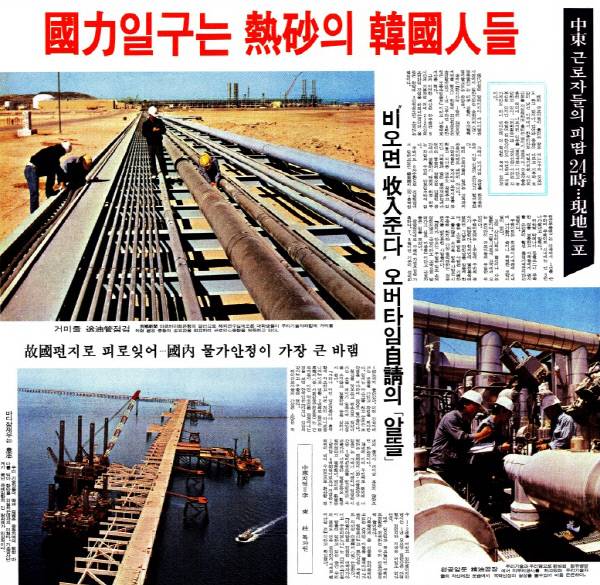 경향신문은 1982년 3월15일자에 전면을 할애해 '중동근로자들의 피땀 24시 현지르포'를 실었다.