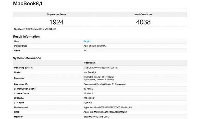 애플이 발표한 12인치 신형 맥북의 벤치마크 점수가 공개됐다. 신형 맥북은 이미 알려진 것처럼 인텔 코어-M을 탑재하고 있다. 14nm 제조공정을 이용한 프로세서지만 성능보다는 저전력에 초점을 맞추고 있다. 실제로 벤치마크 공개 전 코어-M을 탑재한 레노버 요가3 프로 같은 모델의 점수를 바탕으로 신형 맥북이 맥북에어 2014년 버전의 90% 수준 성능을 낼 것으로 예상되기도 했다.
