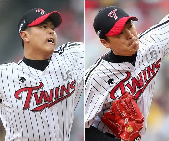 | LG 김선규(왼쪽), 윤지웅(오른쪽). /사진=LG 트윈스 제공 |