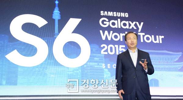 신종균 삼성전자 IM 부문 사장이 9일 오전 서울 서초구 서초동 삼성전자 서초사옥 다목적홀에서 열린 갤럭시 S6 월드투어 서울행사에서 갤럭시 S6와 갤럭시 S6 엣지를 설명하고 있다. 2015.04.09