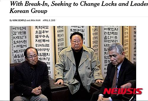 뉴욕타임스는 '뉴욕한인단체 자물쇠와 회장 교체 위해 침입(With Break-In, Seeking to Change Locks and Leadership at a New York Korean Group)'이라는 자극적인 제목 아래 장문의 기사를 올렸다.