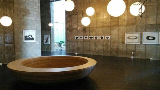 호텔 1층에 있는 하슬라 미술관은 현대미술과 마리오네트로 주제가 나뉜다. 현대미술 쪽에서는 모두 네 가지 기획전이 열리고 있었다. 12간지 동물그림 안에 전통문양을 다채롭게 변용시켜 화사한 분위기를 연출하는 한승민 작가(40)의 '십이지 스타 시리즈'가 전시됐다. 한 작가는 "수평적인 디스플레이가 아닌 하늘로 뚫고 올라가는 수직 디스플레이가 되는 것을 보고 파격의 신선함을 경험했다"며 "하슬라는 공간에 대한 파격과 예술의 일탈을 경험하기에 충분한 에너지 발전소"라고 했다. 한켠에선 최옥영 관장의 개인전도 열리는 중이다. 자궁을 모티브로 해 엄마가 아이를 품고 있는 모습을 동그라미 형상으로 조각해 '우주'라는 이름을 붙인 작품은 호텔 침실로도 쓰인다. 화살표를 따라 계단을 내려가면 신진작가들의 개성 넘치는 '청춘열' 전시를 만난다. 하행은 작가(여ㆍ31)는 도널드 덕의 얼굴을 불상에 접목시킨 자유분방한 작품을 내놨다.