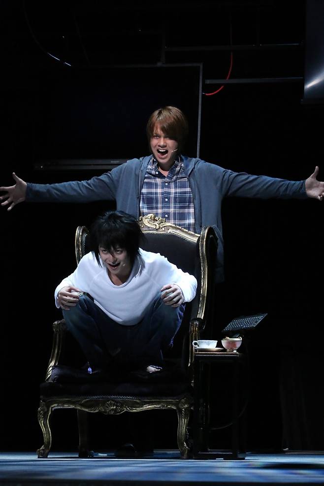 이날 공연에서 눈길을 끄는 대목은 크게 세 가지였다. 라이토 역의 우라이 켄지와 엘 역의 코이케 텟페이 등 두 남자 주인공이 꾸미는 무대와 귀에서 계속 맴도는 뮤지컬 넘버, 무대의 여백을 채우는 입체적인 캐릭터가 시선을 강탈했다.