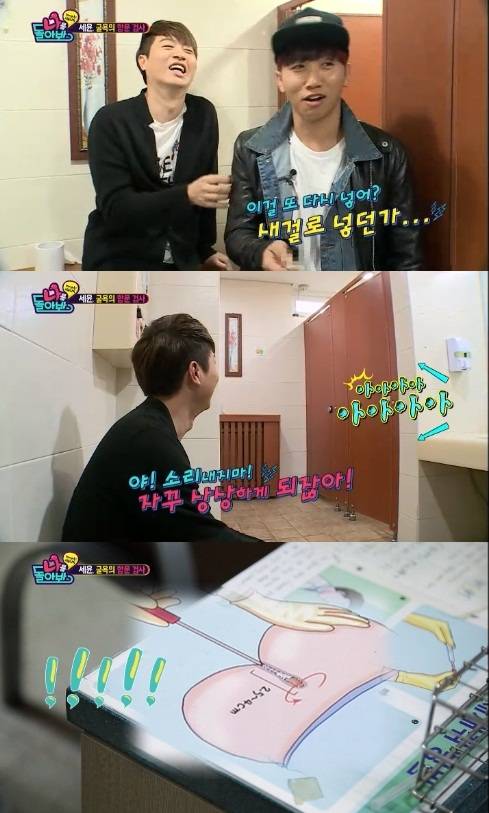 이어 "면봉을 삽입하는 과정에 소리를 내야 더 잘 들어간다"는 농담에 유세윤은 화장실에서 연발 '아-'하는 소리를 내 내 폭소를 자아냈다.