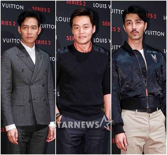 배우 이정재, 이서진, 차승원이 30일 오후 서울 종로구 청진동 광화문 D타워에서 열린 '루이비통 시리즈2 - 과거, 현재, 미래' 포토월 행사에서 포즈를 취하고 있다.