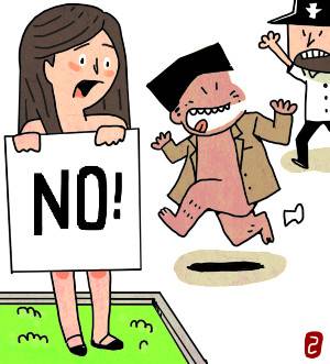 ◇불편한가 음란한가=나체에 대한 대중의 불편함은 윤리와 법의 경계에 있지만 나체 시위에 들이댈 법적 잣대는 마땅치 않다. 대부분의 나체 시위는 집시법 적용을 받지 않는 1인 시위 형태를 띠고 있다. 때문에 누구라도 언제 어디서나 할 수 있다. 문제가 되는 건 나체가 불편하다는 '신고'가 들어왔을 때다. 송씨는 지난해 7월 시위 때 경찰에 연행돼 경범죄처벌법상 과다노출 혐의로 범칙금 5만원을 물었다. 아우디녀 이모씨도 최근 같은 혐의로 5만원의 범칙금을 문 것으로 전해졌다.