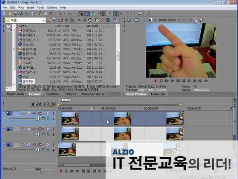 동영상은 그야말로 다양한 정보를 화려하게 전달할 수 있는 멀티미디어의 꽃이다. 이를 접하는 수단도 TV를 비롯하여 스마트폰에 이르기까지 다양하다. 이렇게 넘쳐나는 동영상은 불필요한 부분을 잘라 내거나 자막을 삽입하고 특별한 효과를 삽입하는 등의 2차적인 가공이 필요하다. IT전문교육 알지오에서는 동영상 편집 프로그램 베가스 강좌를 제공해 영상 편집과 관련된 다양한 효과와 정보를 습득할 수 있도록 구성했다.