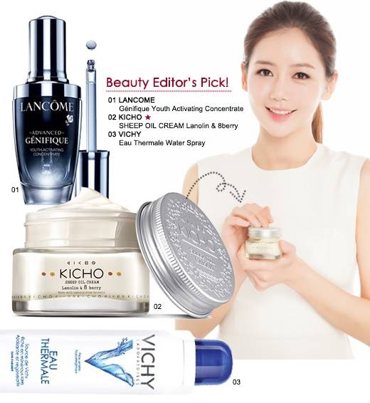 안티에이징에 필요한 성분들이 스킨케어 효과를 극대화시키고 동안 외모를 유지시켜주는 단백질 세럼 02 키초 양유크림 라놀린 & 8베리(KICHO SHEEP OIL CREAM Lanolin & 8berry)청정지역 뉴질랜드에서 자란 양의 털을 독일 기술력으로 정제해 만들어 피부 자극 없이 복합적인 안티에이징 케어가 가능한 양유크림 ★ 안티에이징 화장품 BEST03 비쉬 오떼르말 순수미네랄 온천수 100%(VICHY Eau Thermale Water Spray)프랑스 비쉬 온천수의 다양하고 풍부한 미네랄을 함유한 수분 공급 미스트