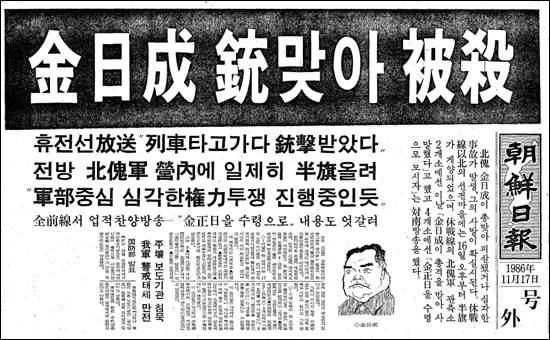 1986년 11월 16일 조선일보에 김일성이 피격․사망했다는 보도가 등장했다. 이후 보도는 경쟁적으로 등장했다. "북괴 김일성이 14일쯤 북괴의 反김세력에 의해 피습, 사망한 것이 확실시 된다", "김정일도 부상을 당했거나 사태를 통제할 만한 위치에 있지 않은 것으로 관측된다", "16일 오후 판문점의 북괴선전마을에 조기가 게양됐다"…. 하지만 11월 20일자 신문은 살아있는 김일성 앞에서 일제히 오보를 인정해야 했다. 언론은 오보책임을 "북괴의 작태"로 돌리며 민망함을 피했다. 당시 오보는 일본과 미국 정보당국에서 비롯된 착각을 조선일보가 그대로 받아쓴 결과 일어난 것으로 알려졌다. 조선일보는 김일성 사망을 제일 먼저 단정적으로 보도한 반면, 중앙일보는 '김일성 피살설'이라 보도하며 종합일간지 중 유일하게 오보를 면한 것으로 전해지고 있다.