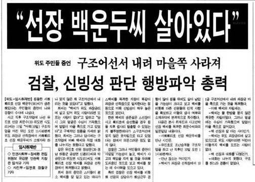 1993년 10월10일 전북 부안군 위도면 앞바다에서 서해훼리호가 풍랑에 휩쓸려 침몰, 292명이 사망하는 참사가 벌어졌다. 전 언론을 장식했던 훼리호 참사 보도 당시 한겨레는 "선장 백운두씨가 살아있다"고 보도했다. 한겨레는 12일 "구조작업에 나선 유진호 선장 최문수씨는 백씨가 소맷자락 하나 젖지 않은 채 구조어선에서 내리는 것을 봤다"고 보도했다. 이후 백씨의 행방을 놓고 "백선장 육지로 도주한 듯"(조선일보) "백선장 군산 오식도에 있다"(서울신문) 등 온갖 추측성 기사가 쏟아졌다. 검찰도 백씨가 도피중인 것으로 보고 백씨를 찾는데 수사력을 모았다. 하지만 10월 15일, 백 선장의 사체가 인양됐다. 백 선장은 가장 먼저 도망친 파렴치범이 아니었다. 최문수씨가 본 백선장은 백선장과 외모가 비슷한 인물이었다. 한겨레 기자는 "입이 열이라도 할 말이 없다"고 말했다.