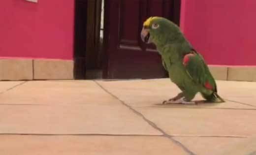 영상을 보면 열린 문틈 사이로 앵무새 한 마리가 살며시 머리를 들이밀고 방안으로 들어온다. 이어 녀석은 남성의 웃음소리를 따라 내기 시작하는데, 마치 영화 속 사악한 악당을 연상케 해 웃음을 자아낸다.