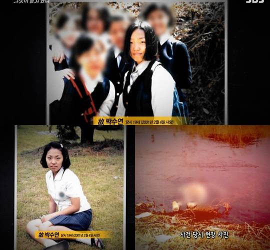 지난 2001년 2월 당시 19살이던 여고생 수연 양은 성인 발목이 조금 넘는 강물에 엎드린 자세로 누워 있는 모습으로 발견됐다. 스타킹 두 짝을 빼곤 옷이 모두 벗겨진 변사체의 모습이었다.