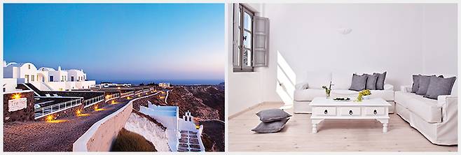 에게해와 화산섬이 만들어내는 황홀한 풍광과 석양을 감상할 수 있는 이메로비글리 마을에서 가장 높은 곳에 터를 잡고 있는 호텔이다. 환상적인 인피니티 풀과 아름다운 야외 테라스에서 감상하는 전망이 가히 최고다.