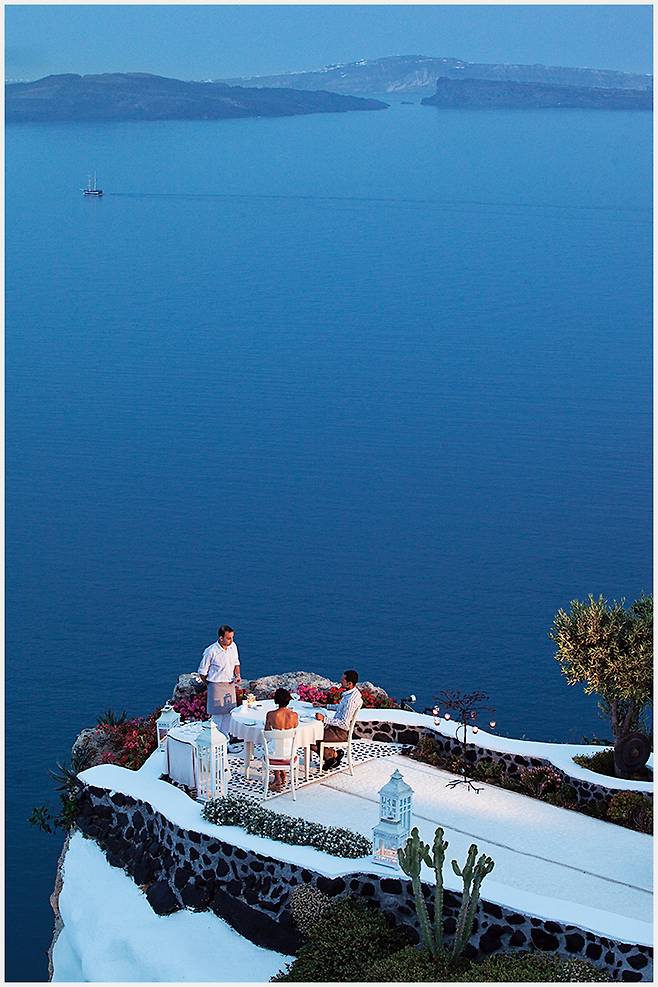 절벽 끝자락에 위치한 공용 풀장과 투숙객만 이용할 수 있는 절벽레스토랑이 포인트. 이곳 레스토랑은 산토리니의 아름다운 레스토랑 중 하나이자, 유명한 셰프들 덕분에 전 세계 최고의 미식가들이 찾는 레스토랑이다. 언덕 위에 있는 데다 테이블이 단 4개뿐이어서 일반인은 올 수 없고, 오직 투숙객만 이 레스토랑에서 식사하는 특권을 누릴 수 있다.