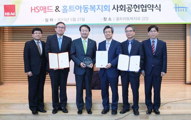 (주)HS애드는 지난 2013년부터 홀트아동복지회 복지 활동에 지속적으로 참여해 왔으며 협약 후 더욱 긴밀한 협력을 통해 소외된 아동들을 위한 사랑을 실천하고 전달하는 자로서의 역할에 앞장서며 나눔문화 확산을 통하여 사회에 공헌하기로 약속했다.