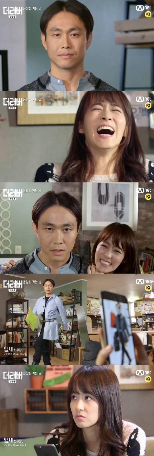 28일 밤 방송된 케이블TV Mnet 목요드라마 '더러버'(극본 김민석ㆍ연출 김태은) 8회에서는 동창회에 가기 위해 머리를 하고 온 오도시(오정세)를 보고 박장대소하는 류두리(류현경)의 모습이 그려졌다.