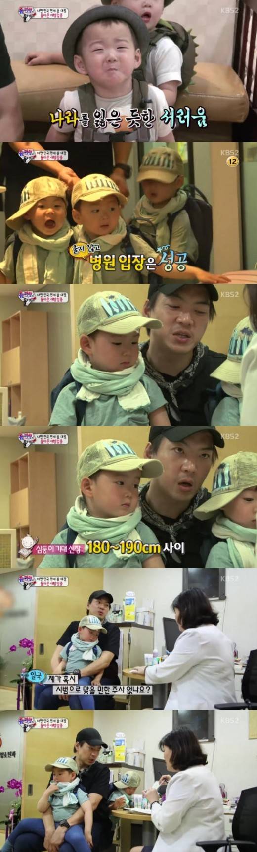 31일 오후 4시 50분에 방송된 KBS2 '해피선데이-슈퍼맨이 돌아왔다'에서 송일국과 삼둥이는 예방접종을 위해 병원을 찾았다.